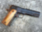 Colt 1911 Government model .45 ACP with full coverage scroll work engraving with high polished 24k gold plating and engraved metal 24k gold hollow body grips. The mag comes fully engraved as well. INQUIRE TO PURCHASE NOW!